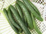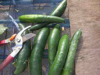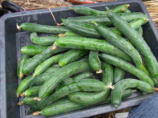 長さ21〜22pの果実を収穫します。収穫が始まったら7日おきに追肥し、水と肥料が不足しないようにします。