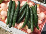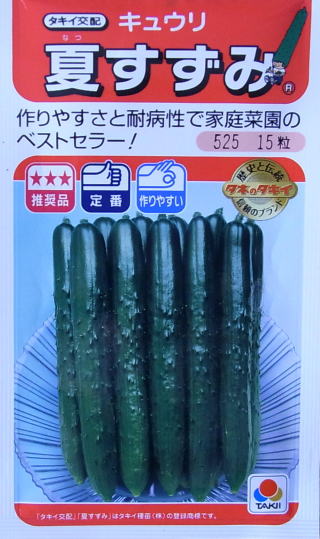 キュウリ栽培の悩みであるべと病、ウドンコ病に抜群に強く、普通品種の半分の消毒でも栽培が可能です。天候に左右されにくい性質に加え、節間が短いため、誘引や摘心が大幅に省ける省力品種です。果は鮮やかなグリーンで水々しく、歯切れがよく、糖度が高いので食味は抜群です。支柱立て栽培、あるいは地這栽培の両方に好適です。各節に連続着果し、早期より末期まで草勢が衰えず多収となります。
