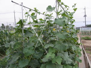 植付本数は3.3u当り、5〜6株、側枝は下位3〜4節は早めに元から除去し、以降は長さ25〜30pで摘心します。伸びにくい枝や孫づるは半ば放任し、伸びたもののみ摘心します。