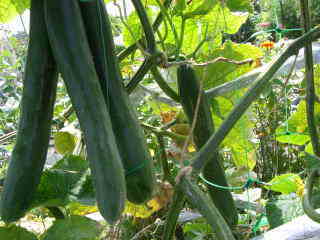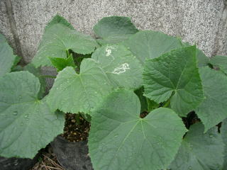 きゅうりは対病性品種と言えども病気にかかり(べと病、炭疽病、斑点細菌病、うどんこ病)予防を主眼に薬剤を散布する。収穫期は比較的短く(約50日)10株育てるより5株5株と時期を離して栽培すると細く愛して、なが〜く愛してとなる。8月種まきしトンネル地這きゅうり栽培は11月まで収穫できますが、良品の収穫は難しいかった。