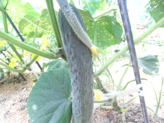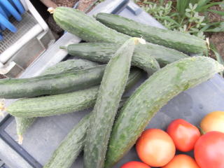 収穫は適当な果実を怠りなく採り、大果にして草勢を弱らせることの無いように注意する。家庭菜園では過剰に収穫できる時もありますが、無駄になっても決して大果に成らないように。幼果のうちに変形している果実は変形が治ることはないので見つけ次第取り除きます。栽培終了期は草勢を見て早めに切り上げた方が次の栽培の準備のためには良いと思います。(栽培終盤は総じて良い果実が少ない果数と相まって取れないことが多い)