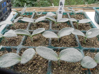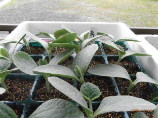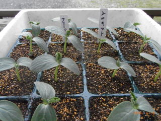 3月中旬種まきすると遅霜の心配のなくなる4月中旬に定植ができる。連結ポットに蒔き3号ポットに移植するか、3号ポットに2〜3粒蒔いて育苗する。発芽は連結ポットのほうが温度管理や苗の移動など取り扱いやすく、接木する場合は5×5の連結ポットが適当と思う。
