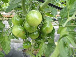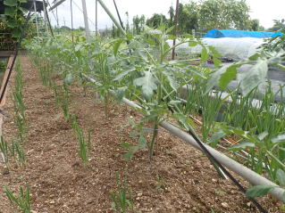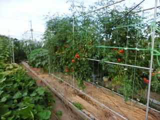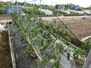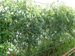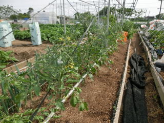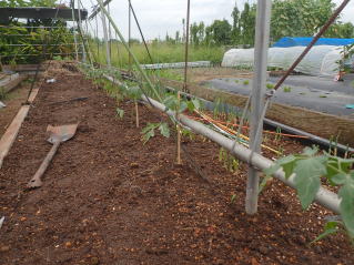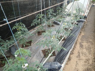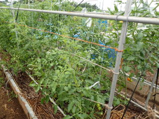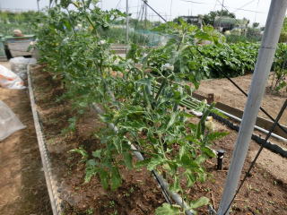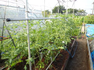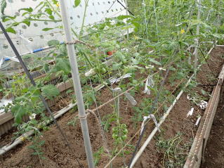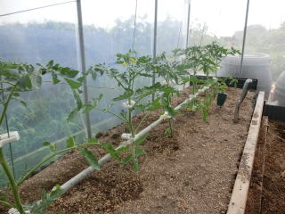 1u当たり苦土石灰150g、完熟堆肥3sと有機配合肥料100gを施します。株がおとなしいので様子を見ながら早目に追肥をします。花数が多すぎると小玉になることがありますので花を間引いてください。