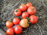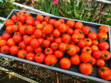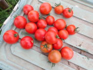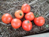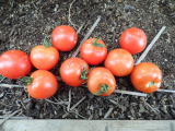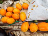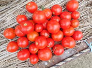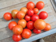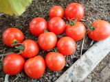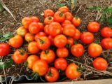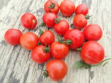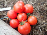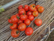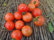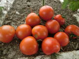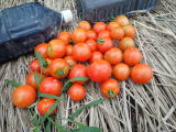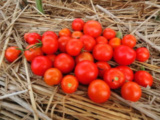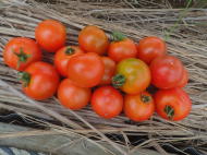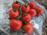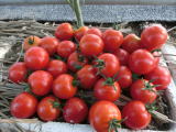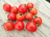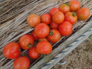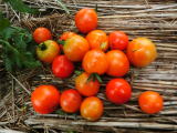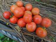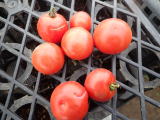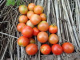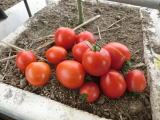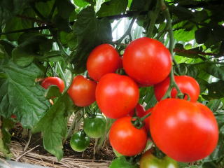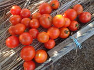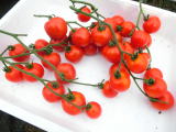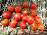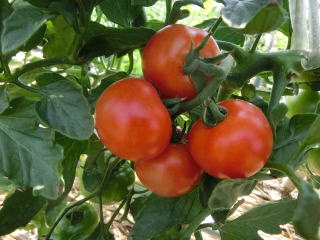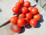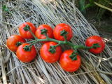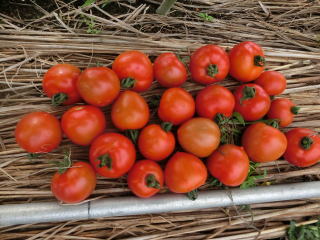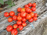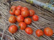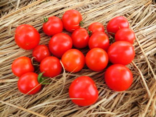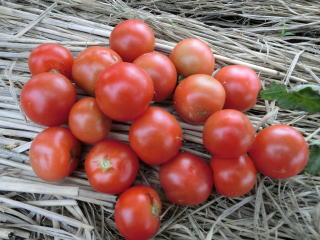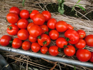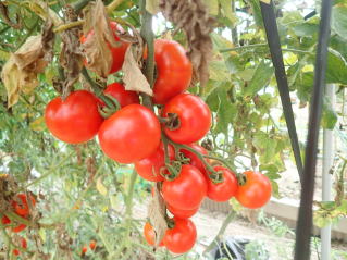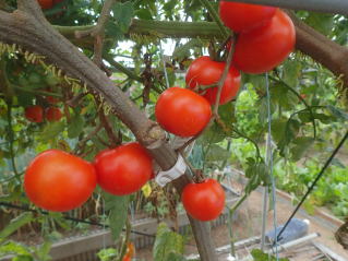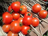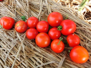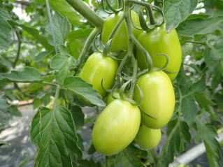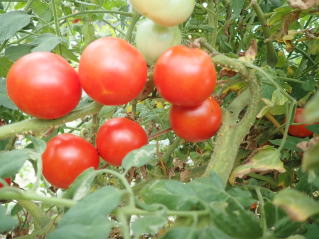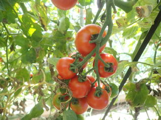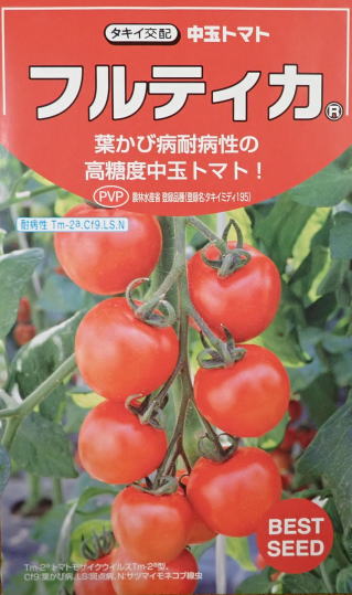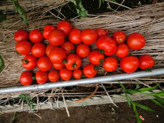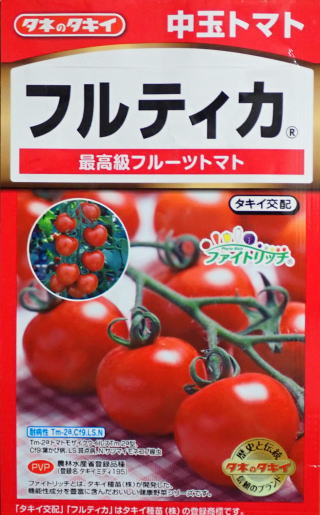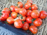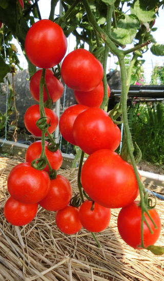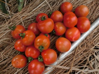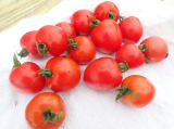 果実の割れが少なく、1花房に約40gの実を10〜15個つけます。色鮮やかで、甘さと酸味のバランスが良く、とてもおいしい中玉トマトです。病気に強いので低農薬栽培ができます。