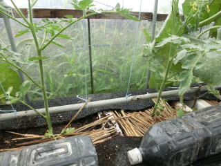 黒色ペットボトルは水封マルチ代用