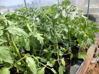 定植時に2.1m程度の支柱を立てて、真っ直ぐ生長するようにヒモなどで順次誘引します。元肥は控えめにし、追肥で調整するようにしましょう。4段目開花が追肥時期の目安です。脇芽は適宜取り除きましょう。