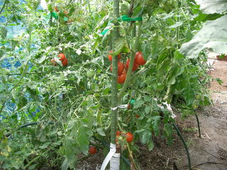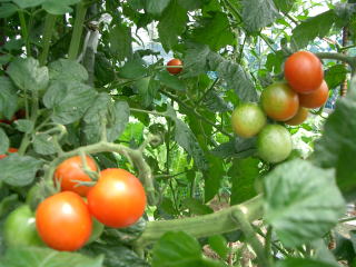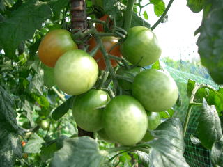 開花後40日くらいで色づきます。果肉が厚いため、果実は割れにくく、日持ちがします。株で真っ赤に熟して収穫すると味が更においしくなります。