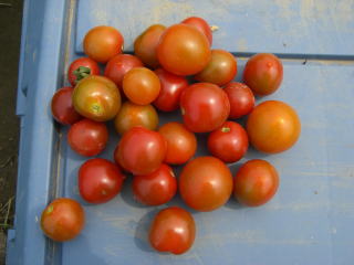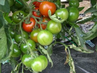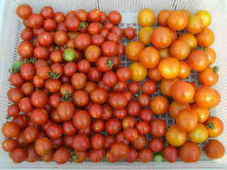果実の割れが少なく、1花房に約40gの実を10〜15個つけます。色鮮やかで、甘さと酸味のバランスがよく、とてもおいしい中玉トマトです。病気に強いので低農薬栽培が出来ます。