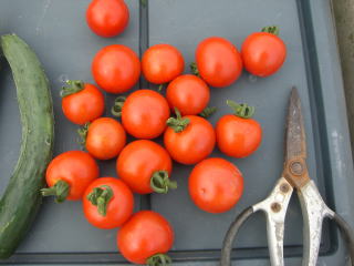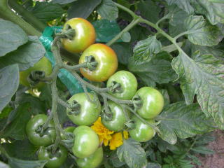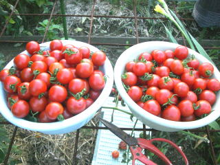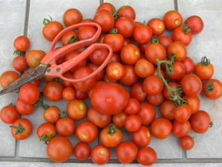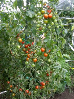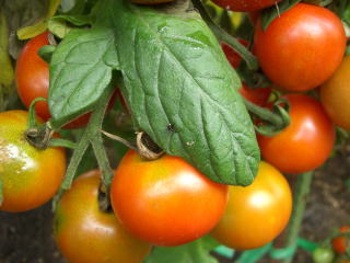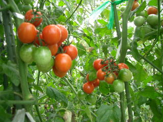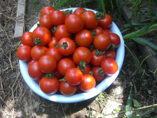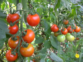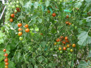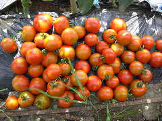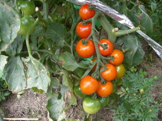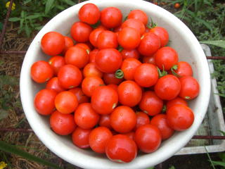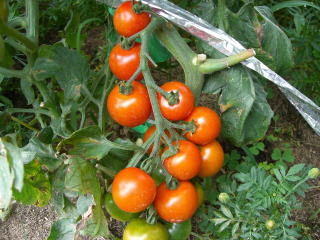 直径3cmほどの、丸いまっ赤な甘くかわいらしい果実が鈴なりになるトマトです。普通の大玉トマトより作りやすく、鉢やプランターづくりにもよい家庭菜園向きのトマトです。