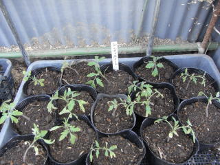 左下の葉っぱはキュウリの苗