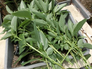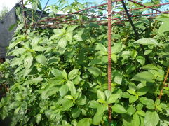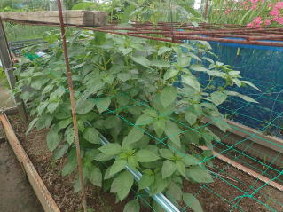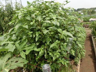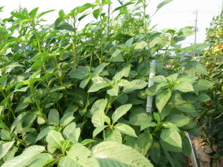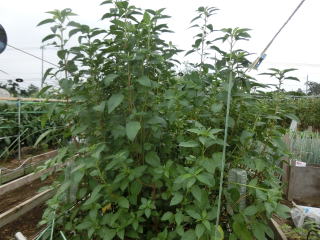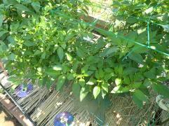 1u当り苦土石灰150g、完熟堆肥2sと有機配合肥料80gを施して深く耕します。草丈が30pの頃芯を止め、分枝を促します。追肥は株の生育を見ながら2回ほど行います。