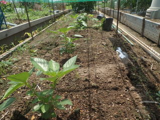 高温と水分を好む作物なので、水餅の良い畑に作付けします。育苗して本葉4〜5枚の頃畑に植えて、速やかに活着させます。畝間150cm、株間35〜40cmを目安とします。定植後30日(草丈50cm程度)ごろを目安に主枝を摘心します。収穫は25cm程度に伸びた分枝を1〜2芽残して収穫します。収穫開始ご20〜25日おきに、チッソ成分主体に追肥してください。