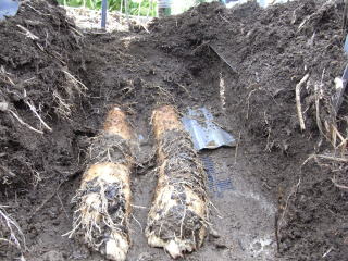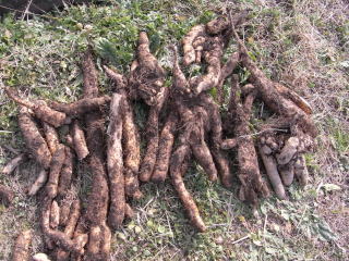 中〜短形のものは前に使用した樋で十分でしたが、施肥料の不適でしょうか、芋の分岐が多くみられました。分岐した物でも味などには変わりなく、芋の成長先端部は特にすりおろした時の見た目が最高でした。