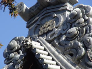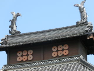 本堂屋根上の六連銭と鯱