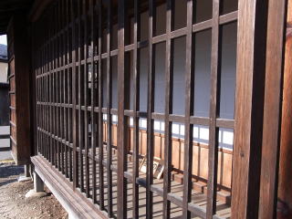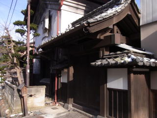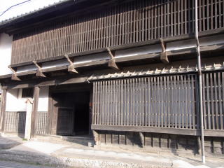 正面は、玄関を改修、前面廊下を設けるなど、改造整備をしておられますが、出格子を付けた二階部分は、良く旧状を伝えています。