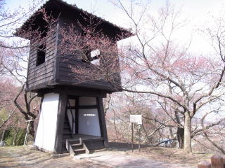 この曲輪からは、西に中央アルプス、東に南アルプスが望め、桜の時には残雪が、紅葉の時には新雪が目にも清かに映える。