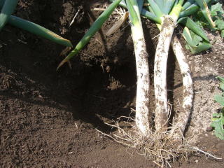 草丈80cm前後、軟白部の太さ2.8〜3.5cm、長さ20cm以上で光沢がありよく太ります。
