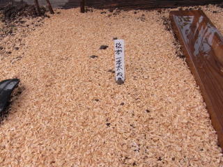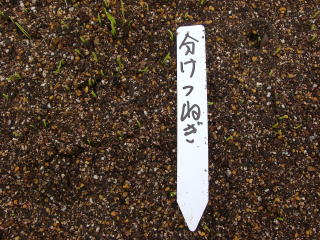 苗床に約10cmの間隔にスジ蒔きします。発芽まで土が乾燥しないように潅水します。発芽後混んだ部分を間引いて株間2〜3cm位にします。