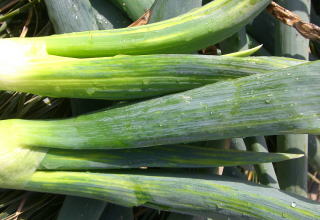 葉は濃緑色で、草丈90〜100cm、軟白部30〜35cm、太さ1.5cm前後、8〜15本に分けつし、葉質柔らかく甘みがあります。