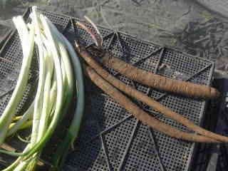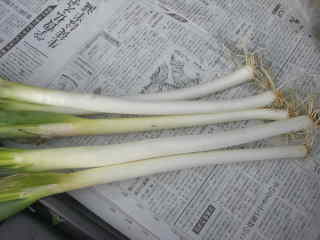 十国ねぎとなべちゃんねぎ 上2本が十国、下太く短い3本がなべちゃん 以下同様