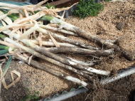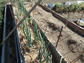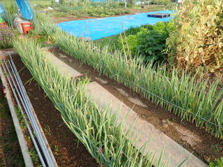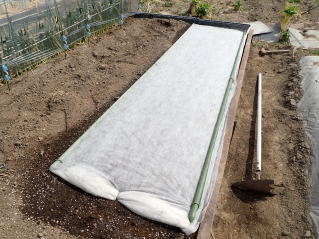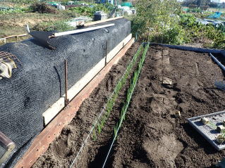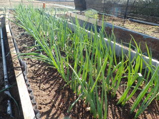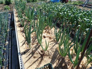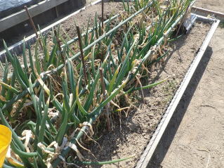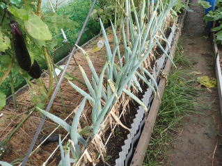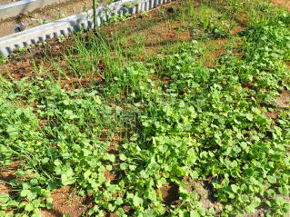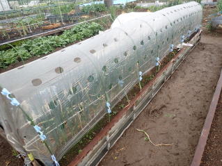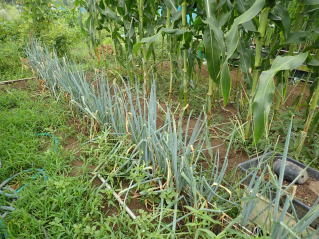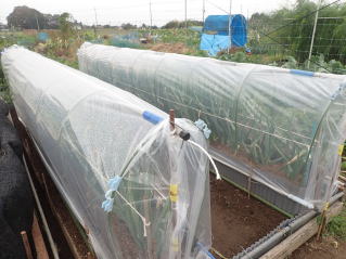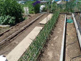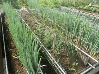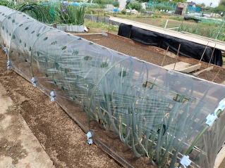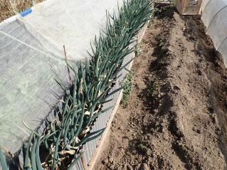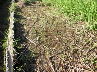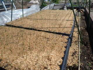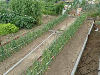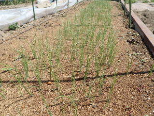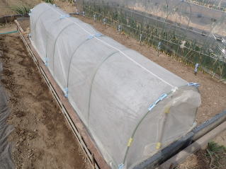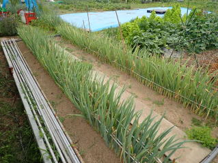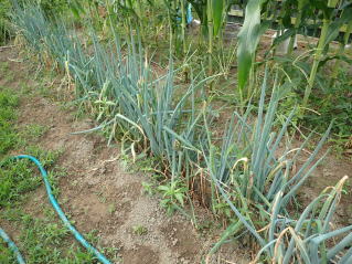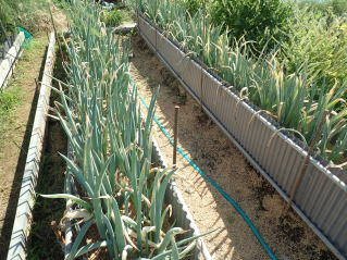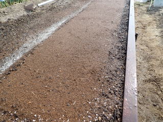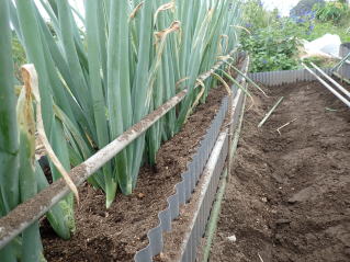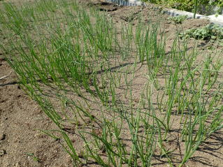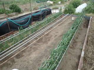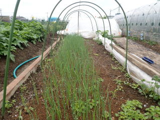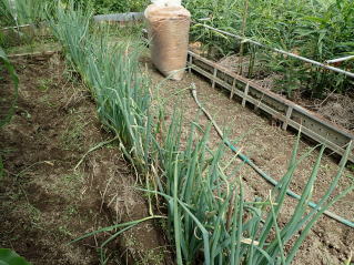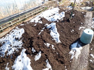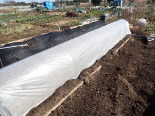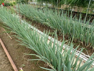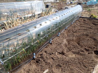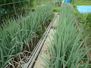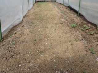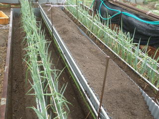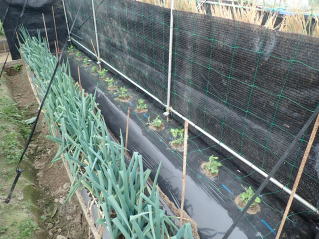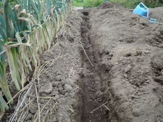 本葉4〜5枚で株間5〜8pに定植します。定植後は3〜4回に分けて土寄せを行い、同時に少量の追肥を行います。