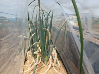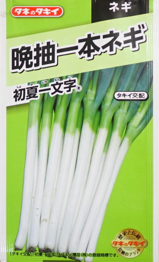 周年栽培も可能な画期的な極晩抽性品種。晩春〜初夏どりにて抽台しにくい極晩抽性の一本ネギ。耐暑性、耐寒性強く、周年での出荷も可能。葉色は濃く、草姿立性で葉折れが極めて少なく、収量性が高い。