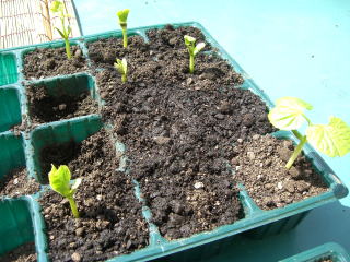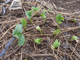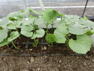 遅霜の心配が無くなってから畝巾1m、90cm間隔で4〜5粒を直まきし、本葉2枚で1本立ちにします。あるいは育苗して本葉4〜5枚で株間90cmに植えます。発芽には高温が必要です。