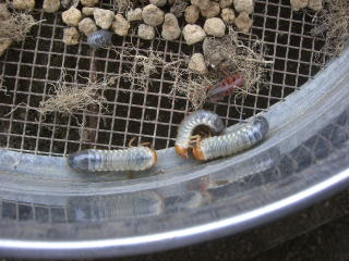 プランターの土の整理する 中から虫が色々