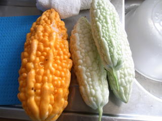 果実は美しい白色です。普通のゴーヤに比べて苦味が少なくサラダにも向きます。ゴーヤチャンプルーなどさまざまな料理に活用でき、夏バテ防止にも役立ちます。