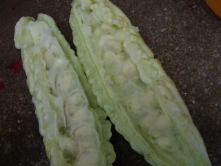 開花後、15〜20日目の若い果実を収穫します。モモルデジンという独特の苦味成分が食欲を刺激し、ビタミンCが豊富に含まれるので夏の栄養補給に好適です。