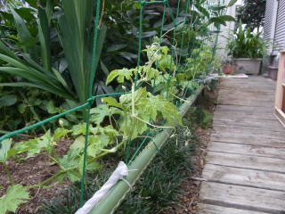 6/30 定植 二階ベランダよりネット張り