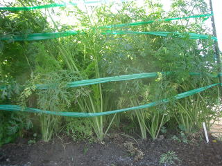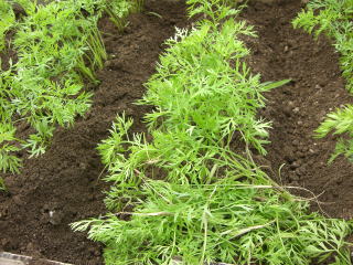 初夏から夏播きが主体です。畑には1u当たり堆肥2kg、苦土石灰100g、化成肥料50gを施しよく耕しておきます。タネはあらかじめ十分に湿らせた土に畝幅30cmで薄くすじまきし、かるく土をかけて土の表面を手のひらで押さえます。発芽までは10日程度かかりますから、その間は乾燥しないように注意します。本葉3枚のころまでに間引いて株間10cm位にし、50gの化成肥料を追肥します。株間を一定にすることと初期の雑草防止に留意してください。