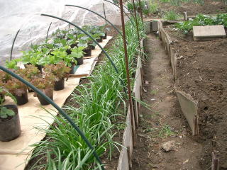 刈り取り収穫は年に4〜5回で後は葉を伸ばし株を充実させます。春先はトンネルなどで保温すると収穫が早まります。