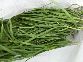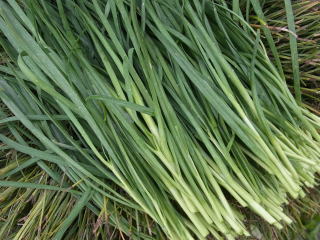 極濃緑色の厚肉葉で、立性の草姿で非常に美しい。葉幅は、広幅で1.2p以上になり、収穫後期でも狭まりがなく、安定して秀品が得られます。厚肉で香りと甘みが極めて強く、最高の味のニラです。休眠がやや深く、抽苔も従来の品種よりやや早いです。