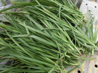 葉幅は1回目収穫時で1.3〜1.5p、3回目の収穫時でも0.9〜1.0pと超幅広となり、葉幅の揃いが非常に良い多収品種です。