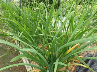 抽苔は7月下旬で、花茎は花ニラとして食用できます。