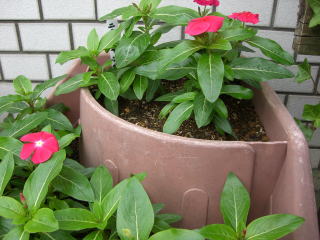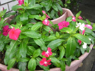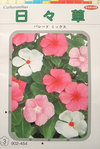 日本の暑い夏でも良く咲き続ける春蒔き一年草です。花弁が幅広く弁と弁との間に隙間が出来ない丸弁の大輪種です。花色はローズ、ピンク、ホワイトの混合で、草丈25p位、花壇、プランター向きの品種です。