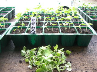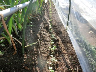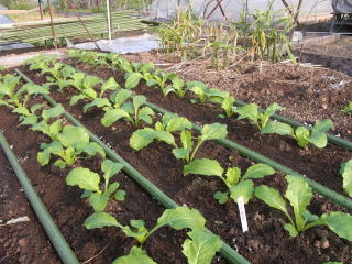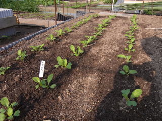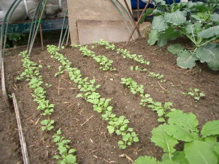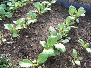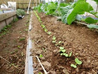 暖かい地域では春まきと秋まきができます。水持ちの良い畑に筋蒔きがばら蒔きします。発芽したら混んだところを間引き、本葉3枚までに株間を15pほどにします。