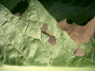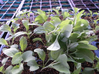 込み入ったところを順次間引き、本葉3枚程度までに2〜3回間引いて株間10cmほどの1本立ちにします。乾燥させないよう、速めの追肥、水遣りを行います。初期のアブラムシは早めに退治します。