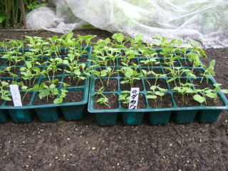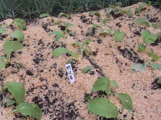 畑には1u当たり堆肥3s苦土石灰100g、化成肥料100gを施しておき、1本立ちにしたときに80gの化成肥料を施します。