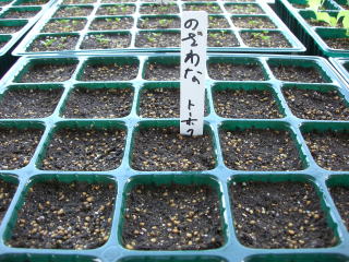 畑に直接まきます。土を十分湿らせて、幅30p位に薄くスジまきし、かるく土をかけます。生育に応じて順次間引きをし、間引きした苗はおひたしなどに利用します。