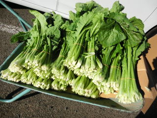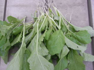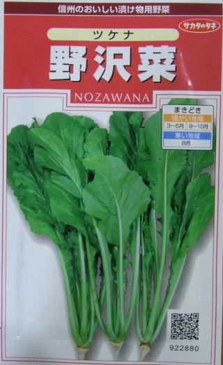 「野沢菜漬け」で有名な野沢菜です。長野県で育てられ、現在では全国で作られています。種蒔き後70日位で草丈70cm、葉数5〜8枚で、霜が2〜3回降りてから漬け込むのが理想です。カブの茎葉が伸びたもので、菜類の漬物とは違った風味が味わえます。
