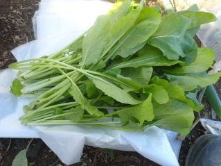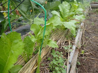 秋蒔き栽培は強い霜が2〜3回あったら伸び盛りのうちに採り入れます。