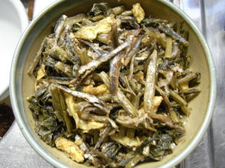 野沢菜、煮干し油炒め