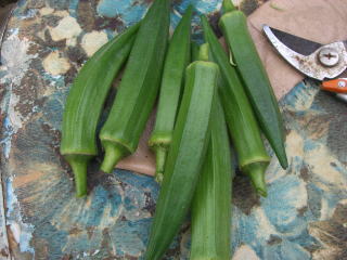 初収穫 オクラとモロヘイヤ