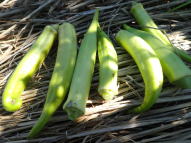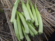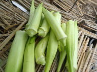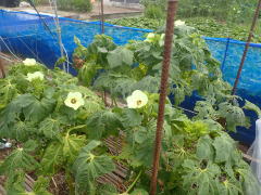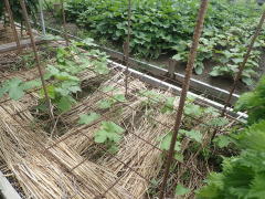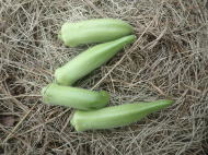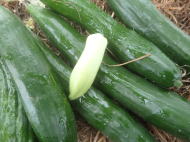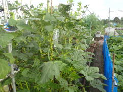 マルチ栽培で植え付けると地温確保と雑草防除に有効です。 畑に直接まく場合は約2pの深さにタネをまきます。 ポットにタネをまく場合は本葉2〜3枚で定植します。 果実が成り始めたら1株当たり50g(8:8:8)の化成肥料を施し、果実の下の数枚を残しいて下葉は生育にともなって取り除きます。 6〜8節以上に花が咲き、長さ約10〜16pが収穫適期です。 適期を逸すると果実が硬くなりますので早めの収穫を心がけます。