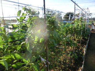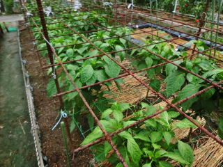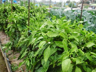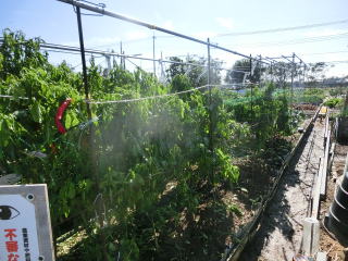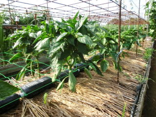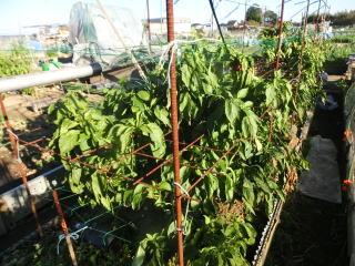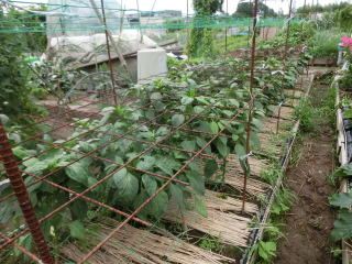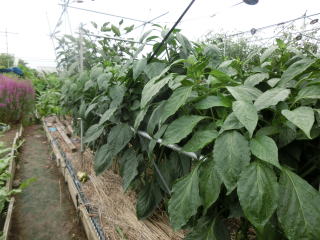 1u当たり苦土石灰150g、完熟堆肥3sと有機配合肥料120gを施してよく耕します。4本仕立てとし、定植と同時に支柱を立て枝折れを防ぎます。乾燥と肥料切れに気を付けます。