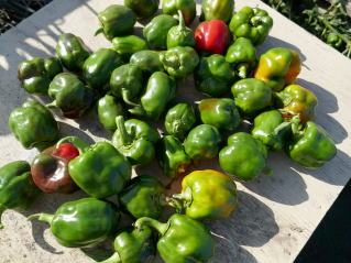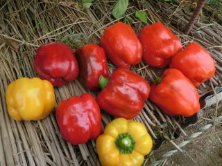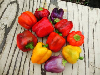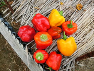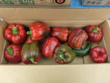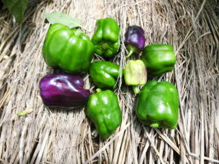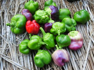 本種は、ピーマンの交配種で、レット・オレンジ・イエロー・ホワイト・パープルの五色がそろった完熟収穫用のカラフルピーマンである。果形はベル型で、果長11p位、果径9p位で、果重は180g〜200gの果揃いになる。各色とも果肉は肉厚で、甘みがあり、食味は極上。食欲の出るカラフルなサラダとして利用できるだけでなく、炒め物にしても甘くて美味しく食べられる。