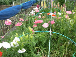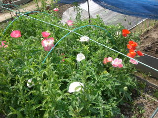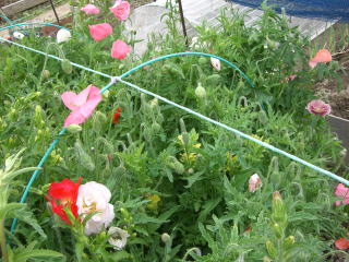 虞美人草(ぐびじんそう)の名で知られる花です。豪華な八重や清楚な一重の花が株元から次々と伸びて咲きます。草丈80cmで、寒さにも強く作りやすい品種です。