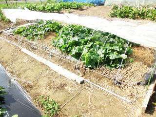 堆肥など有機質肥料および元肥としてリン酸主体の化成肥料を施してよく耕します。窒素肥料の多用はつるぼけの原因になるので注意します。また、病気、乾燥を防ぐため、ベットはマルチ・敷きわらをしてトンネルで保温します。着果時に追肥すると効果的です。